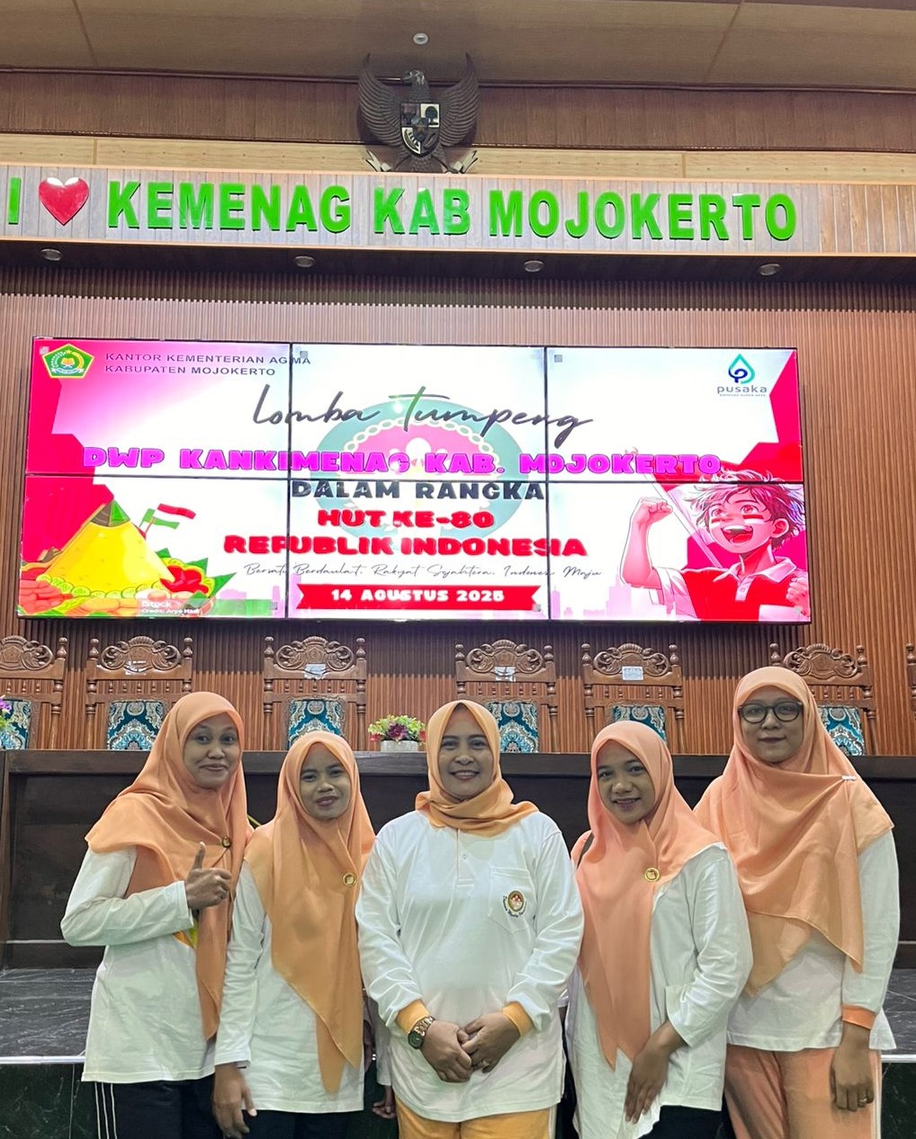 Kamis, 14 Agustus 2025, delegasi Dharma Wanita Persatuan (DWP) MAN 1 Mojokerto turut meramaikan peringatan HUT ke-80 Republik Indonesia yang digelar oleh Kantor Kemenag Kabupaten Mojokerto. Kegiatan ini mengusung tema nasional Bersatu, Berdaulat, Rakyat Sejahtera, Indonesia Maju.