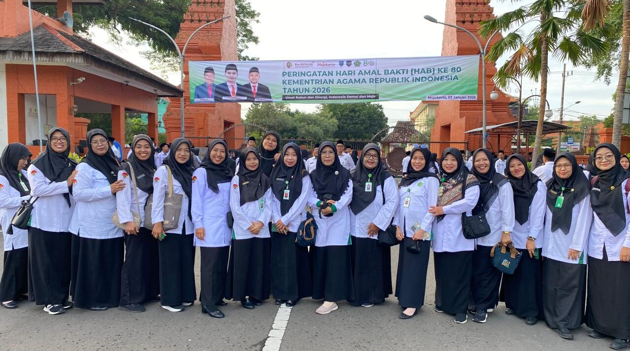 Balai Pemerintahan Kabupaten Mojokerto pada Sabtu pagi, 03 Januari 2026. Ribuan Aparatur Sipil Negara (ASN) di lingkungan Kantor Kementerian Agama Kabupaten Mojokerto berkumpul untuk melaksanakan Upacara Peringatan Hari Amal Bhakti (HAB) Kemenag ke-80.
